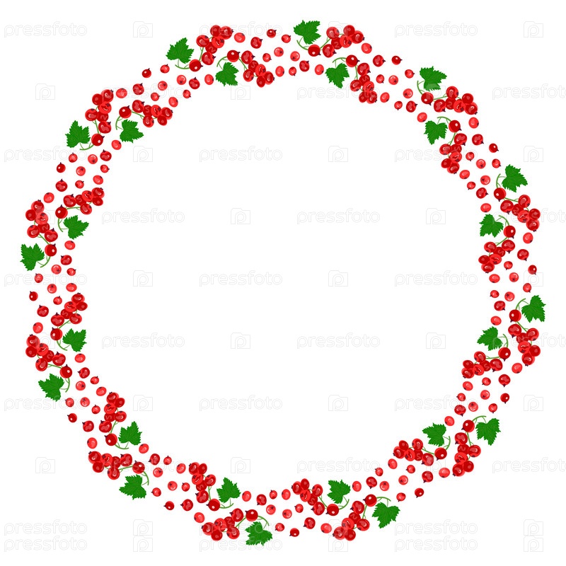 Круглая рамка из ягод красной смородины с зелеными листьями. Концепция здорового питания. Спелые ягоды. Сбор фруктов. Векторные иллюстрации в плоском стиле