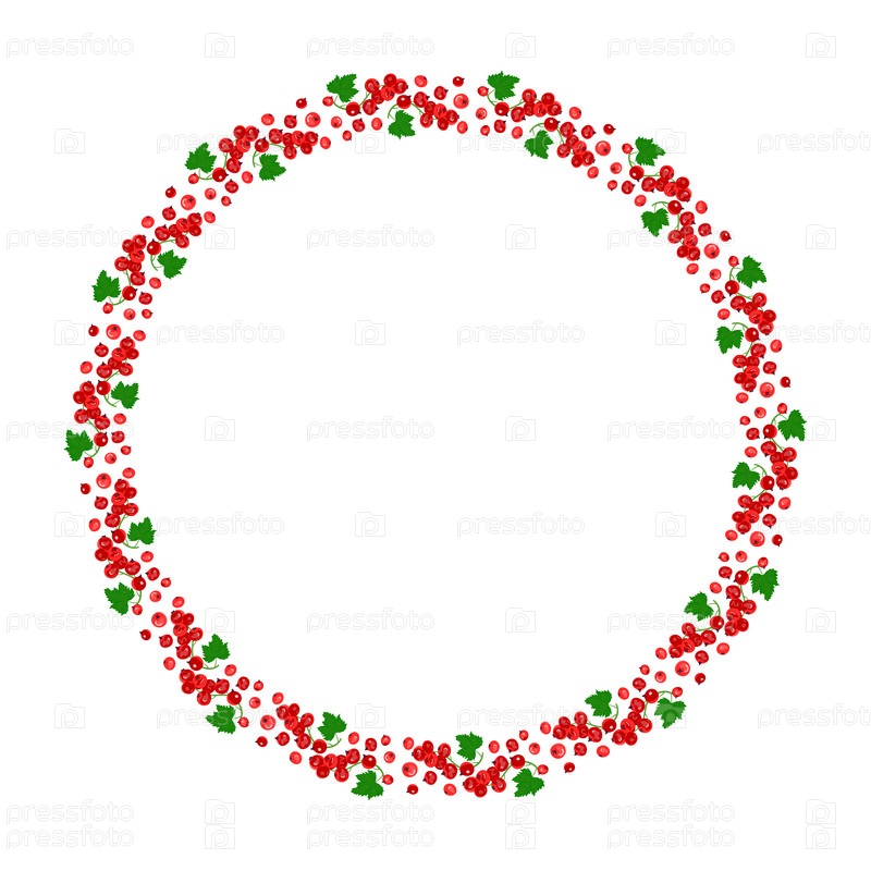 Круглая рамка из ягод красной смородины с зелеными листьями. Концепция здорового питания. Спелые ягоды. Сбор фруктов. Векторные иллюстрации в плоском стиле