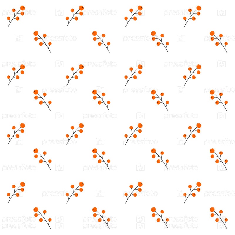 Бесшовный узор из веточек с ягодами в плоском стиле. Векторная иллюстрация
