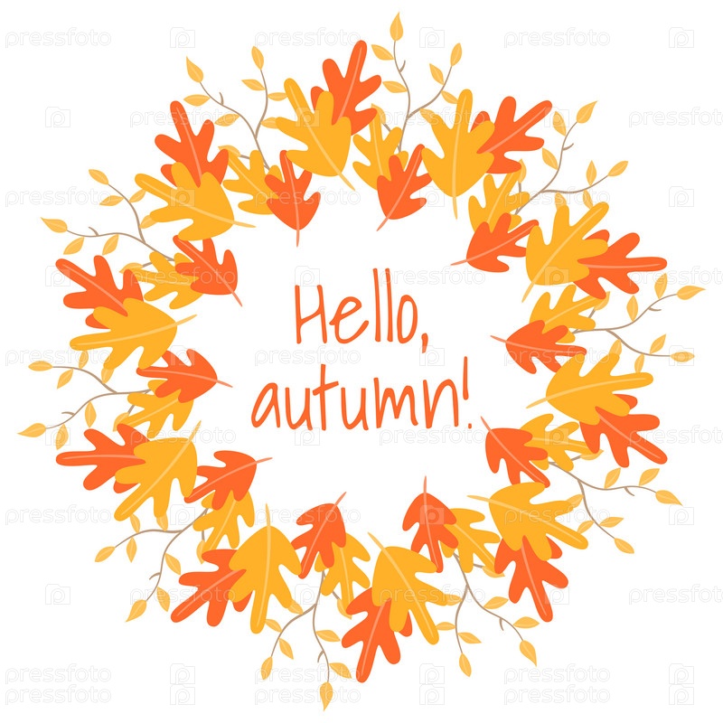 Венок из разноцветных осенних листьев. Привет осень. Векторные иллюстрации в плоском стиле