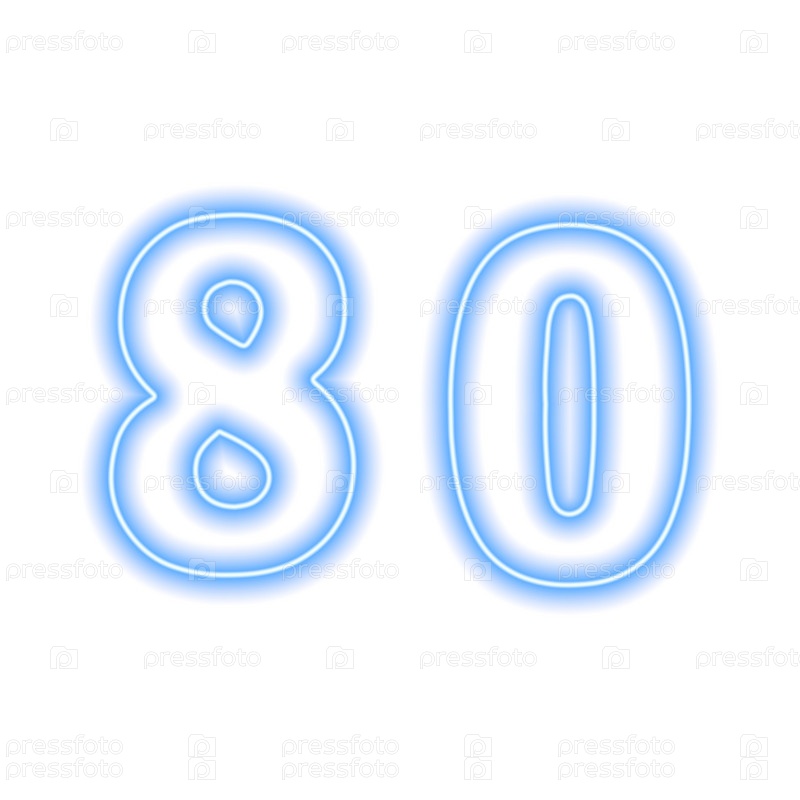 Неоново-синий номер 80 изолирован на белом. Серийный номер, цена, место. Векторная иллюстрация