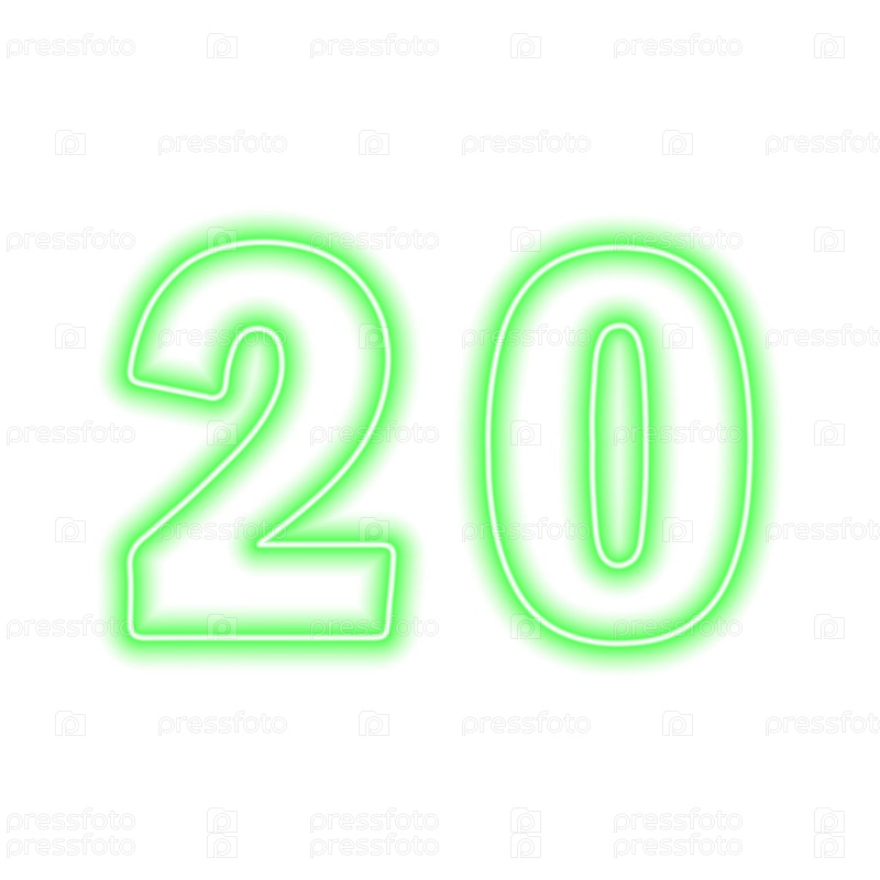 Неоново-зеленый номер 20 изолирован на белом. Серийный номер, цена, место. Векторная иллюстрация