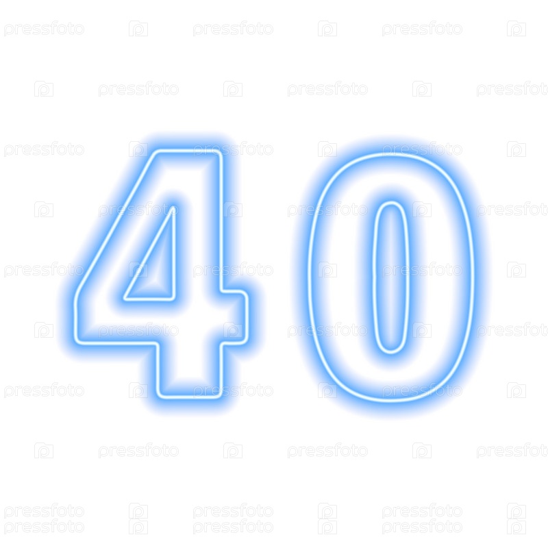Неоново-синий номер 40 изолирован на белом. Серийный номер, цена, место. Векторная иллюстрация