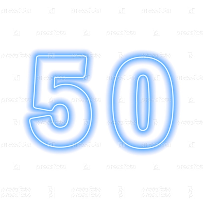Неоново-синий номер 50 изолирован на белом. Серийный номер, цена, место