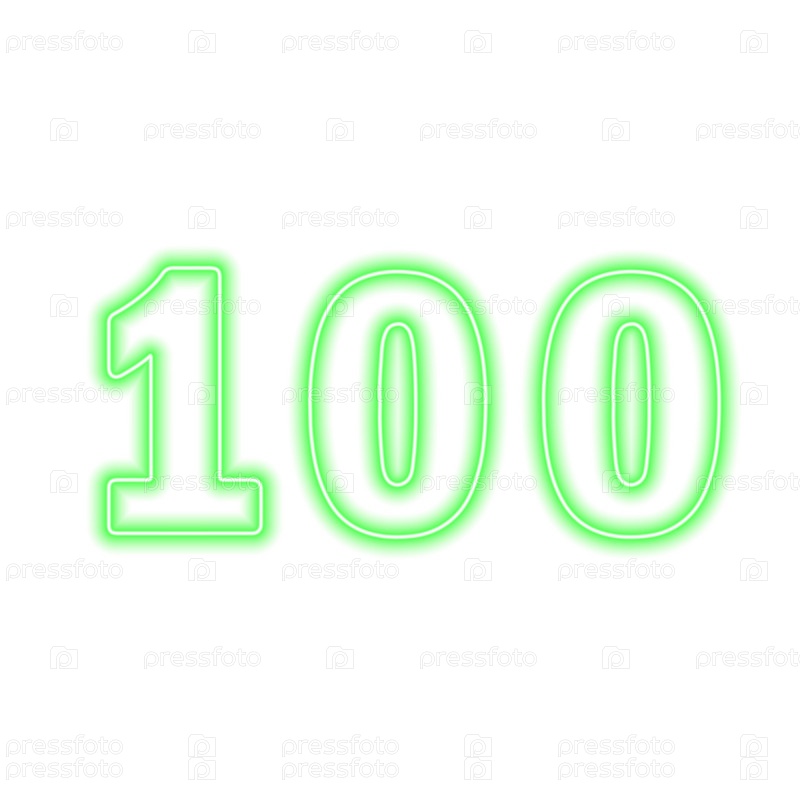 Неоново-зеленый номер 100 изолирован на белом. Серийный номер, цена, место. Векторная иллюстрация