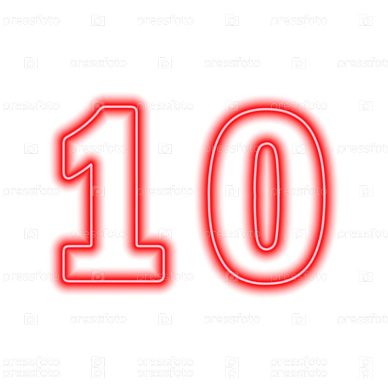 Неоново-красный номер 10 изолирован на белом. Серийный номер, цена, место. Векторная иллюстрация