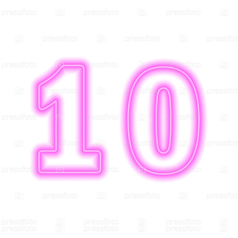Неоново-розовый номер 10, выделенный на белом. Серийный номер, цена, место. Векторная иллюстрация