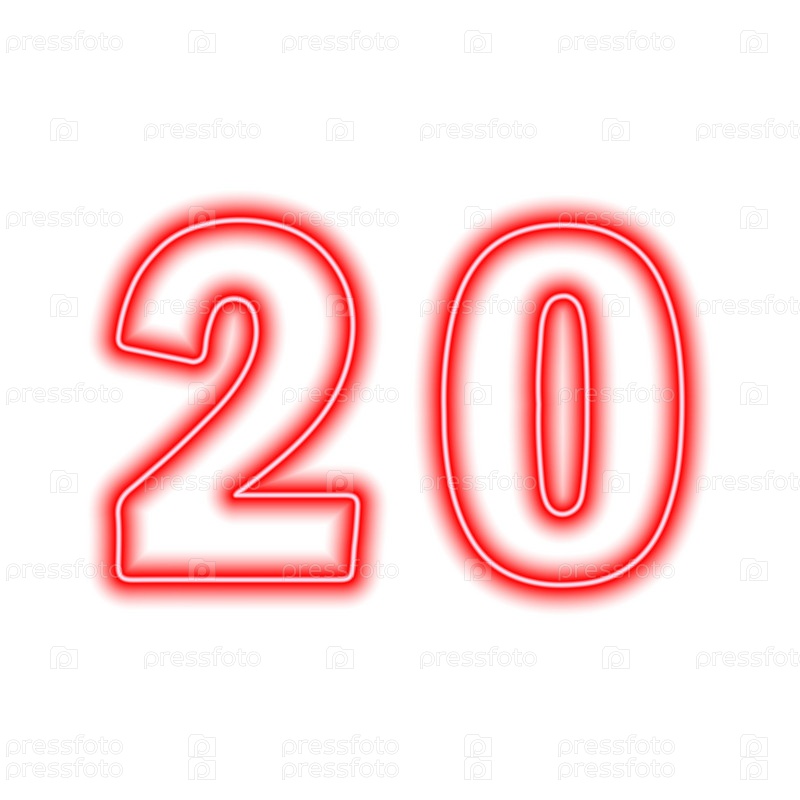 Неоново-красный номер 20 изолирован на белом. Серийный номер, цена, место. Векторная иллюстрация