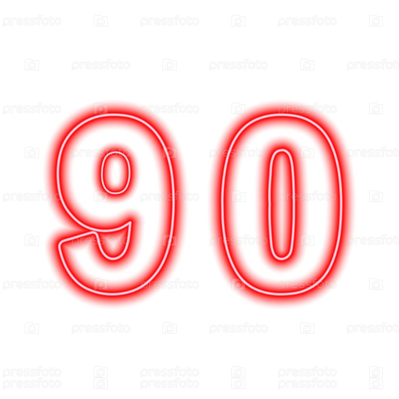 Неоново-красный номер 90 изолирован на белом. Серийный номер, цена, место. Векторная иллюстрация