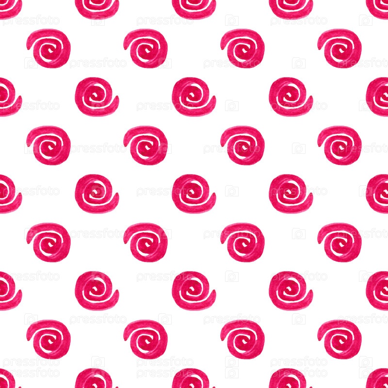 Бесшовный узор с нарисованными вручную акварельными абстрактными розовыми спиралями на белом. Простой геометрический фон