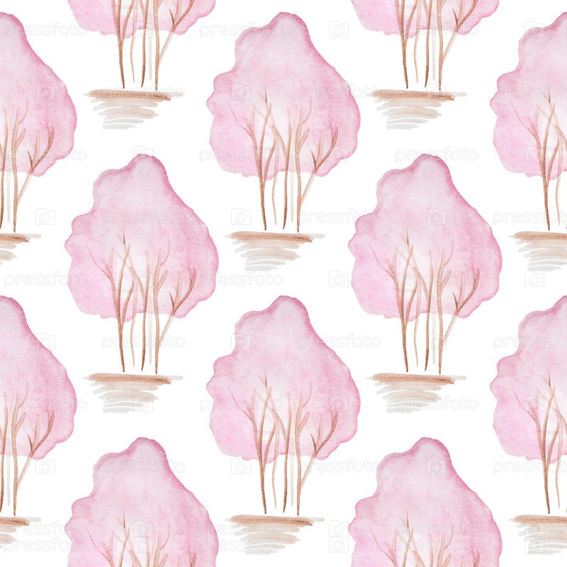 Бесшовный узор с нарисованным вручную акварельным кустарником с пышной розовой листвой на белом. Иллюстрация
