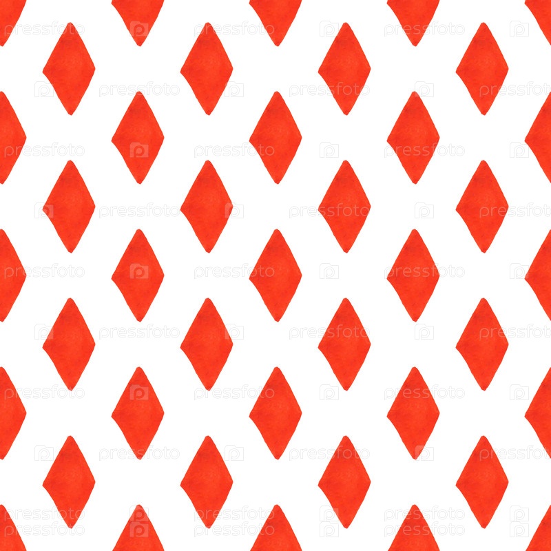 Геометрический бесшовный узор с маленькими красными ромбами, раскрашенными вручную на белом фоне. Иллюстрация для текстиля, печати и т. д