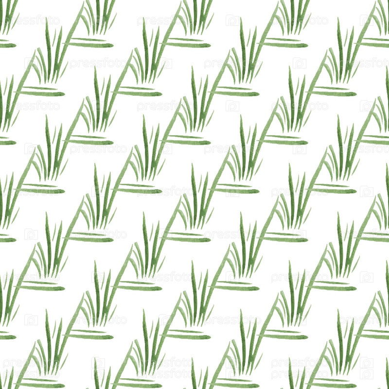 Бесшовный узор с зеленой акварельной травой, нарисованной вручную на белом фоне. Для текстиля распечатайте. Природная органическая концепция