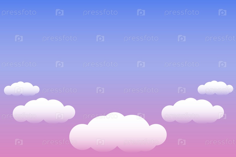 Иллюстрация неба с облаками и розовым и синим градиентом. Небо на рассвете