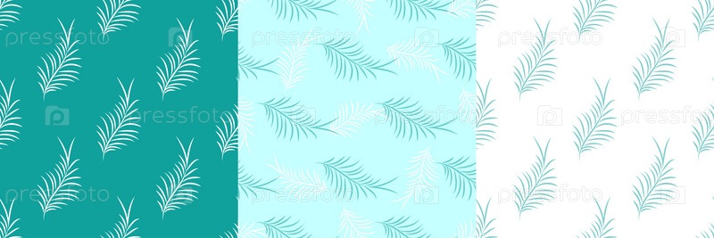 Набор экзотических тропических ботанических бесшовных узоров. Тропические листья белого и зеленого цветов. Векторная иллюстрация