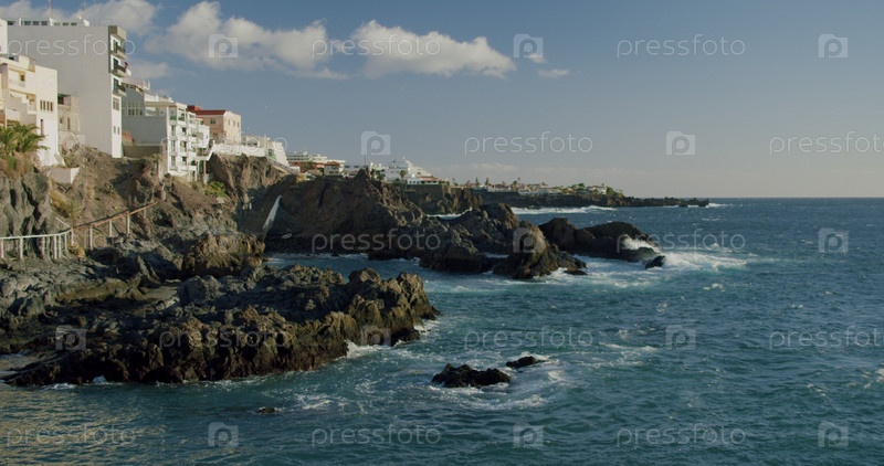 Тенерифе, Канарские острова, Пуэрто-де-Сантьяго, Плайя-ла-Арена. Вид на черный песчаный пляж, Атлантический океан