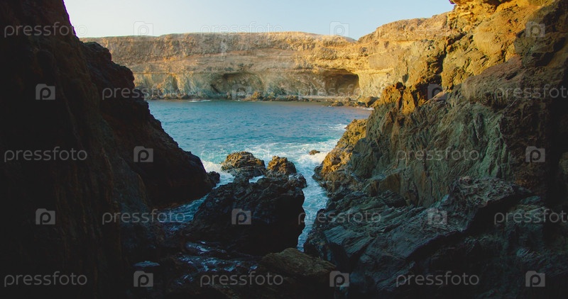 Пещеры города Ажуй на западном океанском побережье острова Фуэртевентура, Канарские острова. Испания, 4к. Пуэрто де ла Пенья. Никто, природный пейзаж