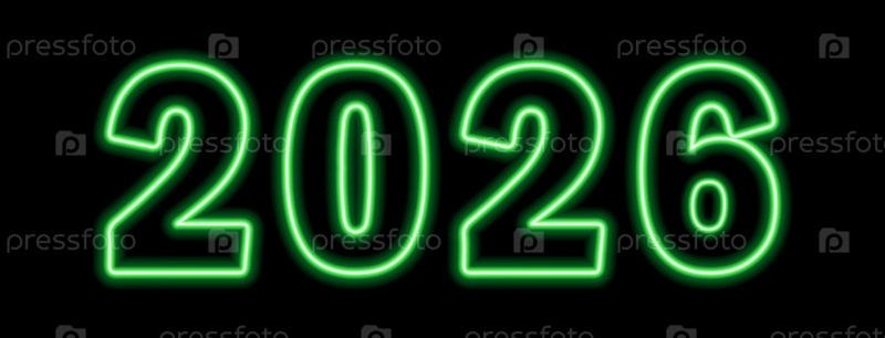 Зеленый неоновый цвет 2026 года на черном фоне. Векторная иллюстрация