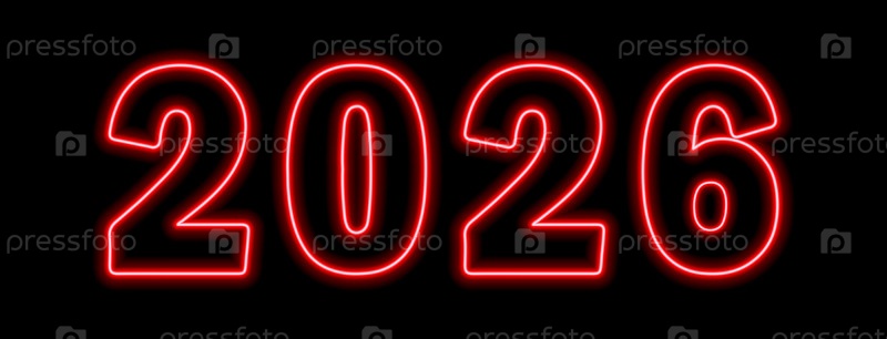 Красный неоновый цвет 2026 года на черном фоне