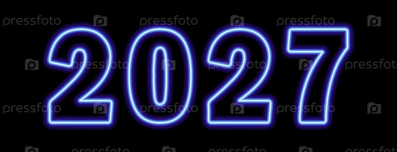 Синий неоновый цвет 2027 года на черном фоне