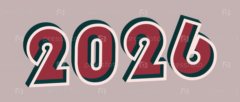 2026 год с 3D-эффектом в стиле ретро. хорошие красные и темно-бирузовые цвета