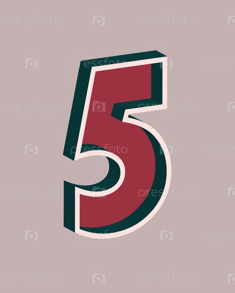 Вектор номер 5 с 3D-эффектом в стиле ретро. хорошие красные и темно-бирузовые цвета
