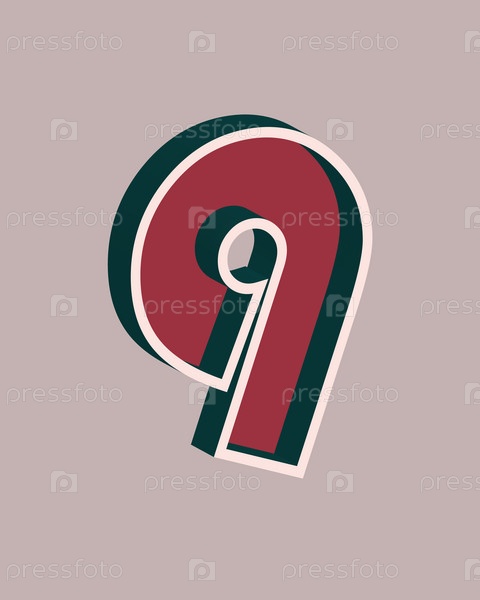 Вектор номер 9 с 3D-эффектом в стиле ретро. хорошие красные и темно-бирузовые цвета. векторная иллюстрация