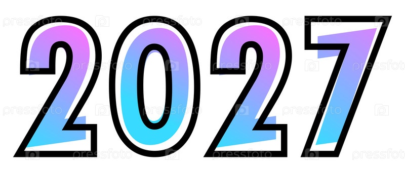 Новогодний 2027 дизайн текста с сине-фиолетовым градиентным цветом и черным контуром