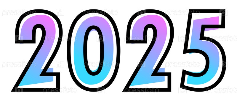 Текст оформления Нового 2025 года с сине-фиолетовым градиентным цветом и черным контуром