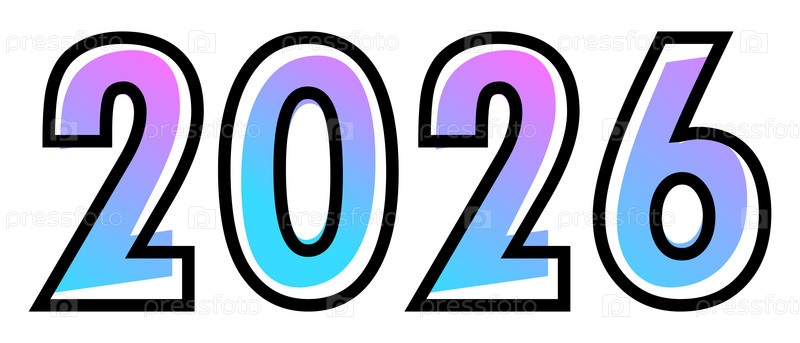 Новогодний 2026 дизайн текста с сине-фиолетовым градиентным цветом и черным контуром