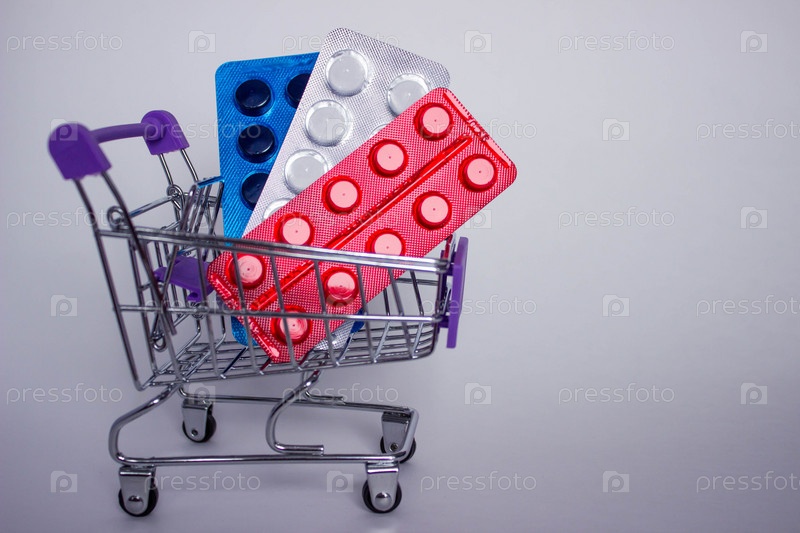 Мини-декоративная пустая тележка для покупок с фиолетовыми элементами на белом фоне с копировальным пространством