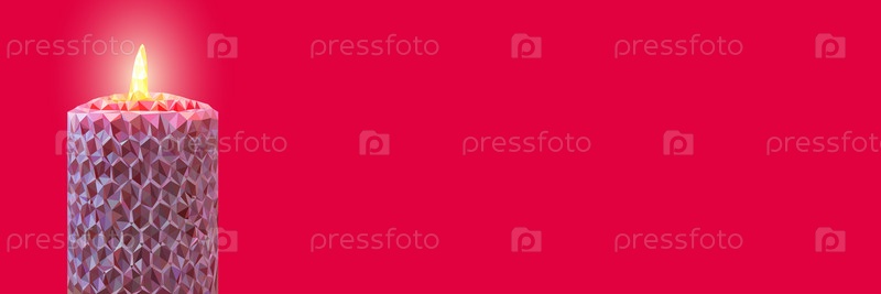 Баннер с розовой многоугольной свечой, красным фоном и местом для текста. Иллюстрация к празднику, празднику