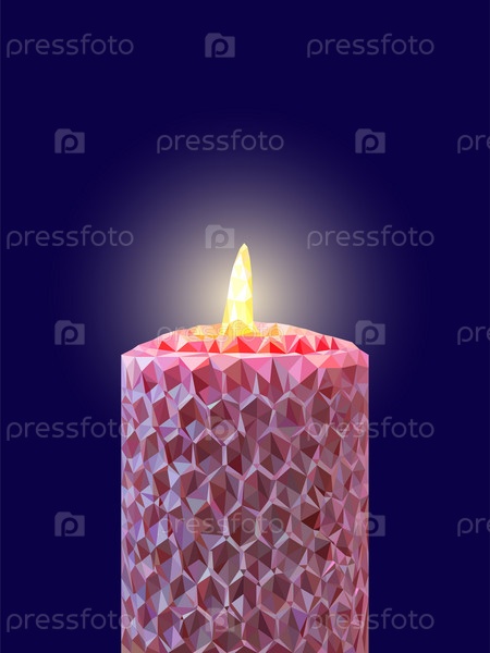 Розовая многоугольная свеча на синем фоне с местом для текста