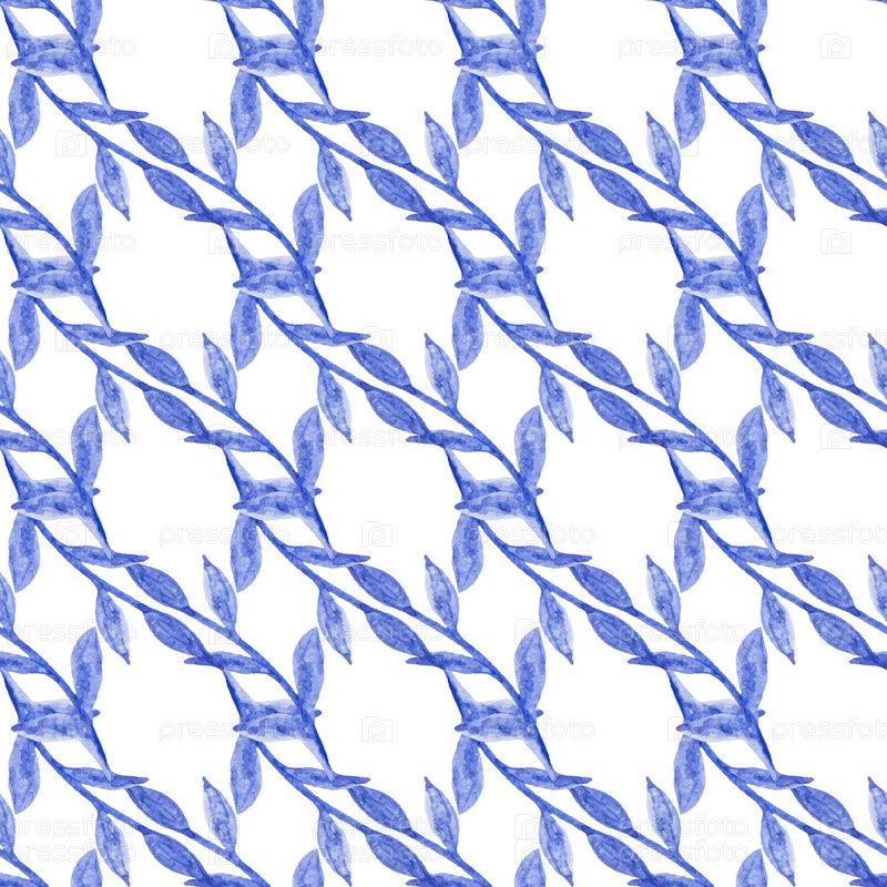Бесшовный узор с нарисованными вручную акварельными голубыми ветвями с листьями на белом. Органическая, натуральная, свежая концепция иллюстрации для текстиля, печати и т. д