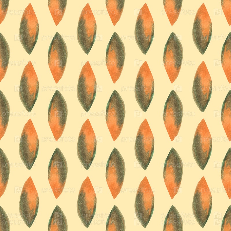 Бесшовный узор с нарисованными вручную акварельными зелеными и оранжевыми листьями. Абстрактная фоновая иллюстрация. Органическая, натуральная концепция свежести для текстиля, печати и т. д