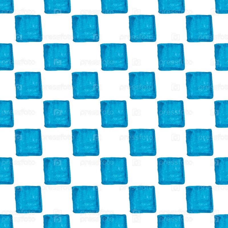 Геометрический бесшовный узор с маленькими синими квадратами, раскрашенными вручную, на белом фоне. Иллюстрация для текстиля, печати и т. д