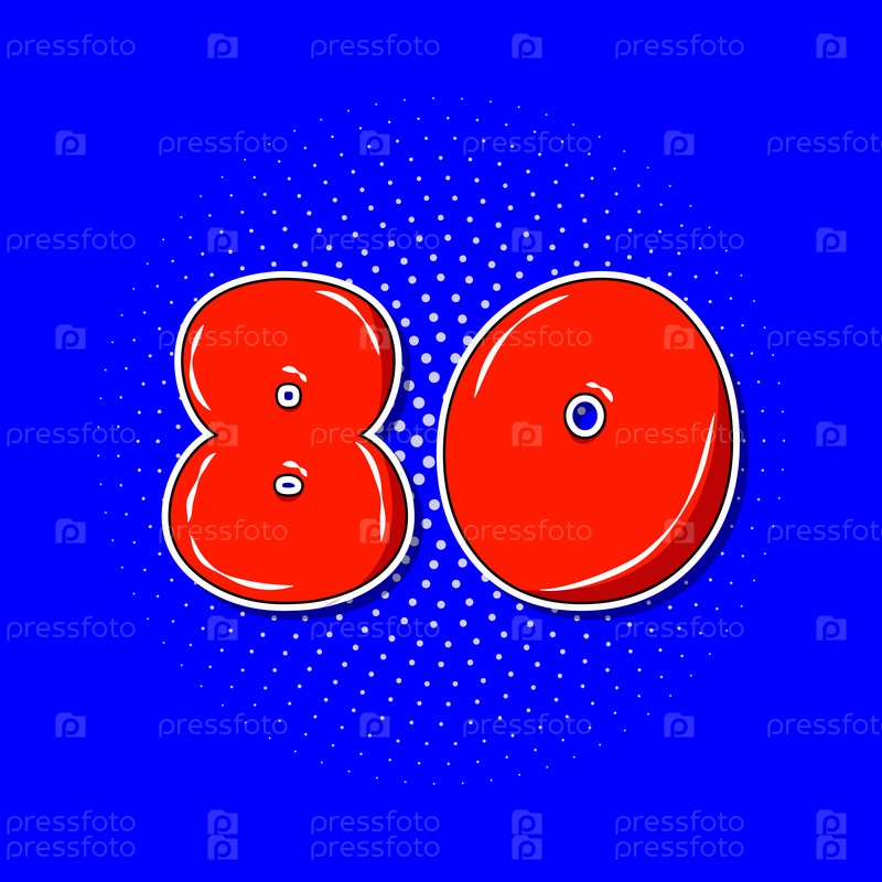 Поп-арт красный номер 80 на синем пунктирном фоне