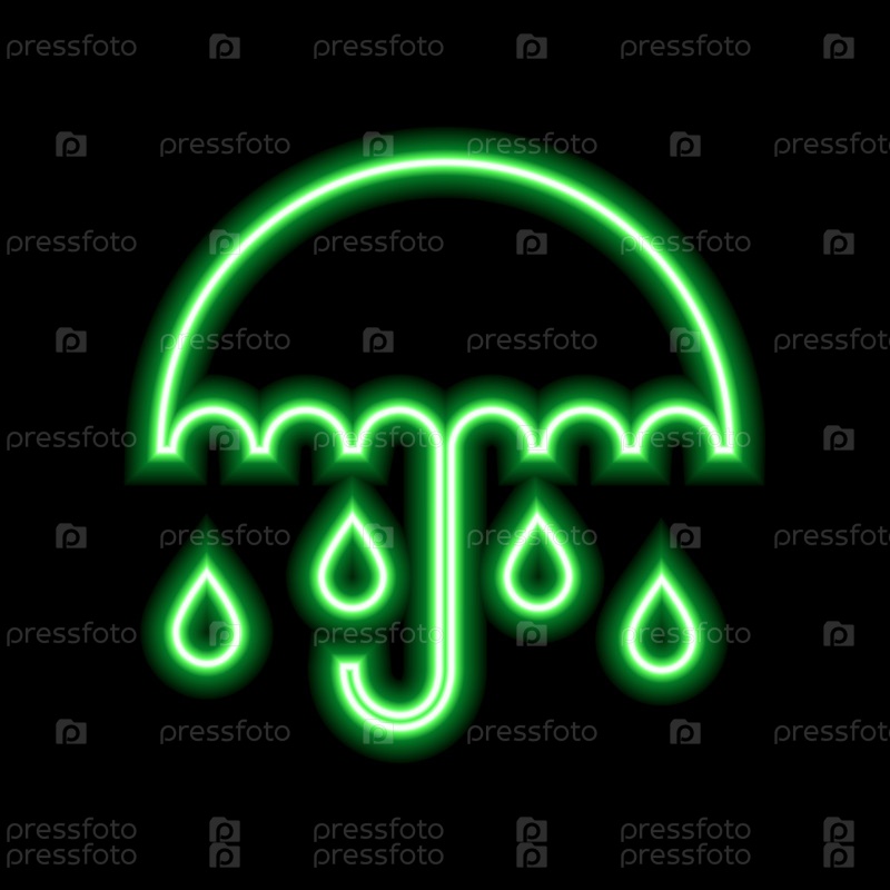 Зеленый неоновый зонтик с каплями дождя