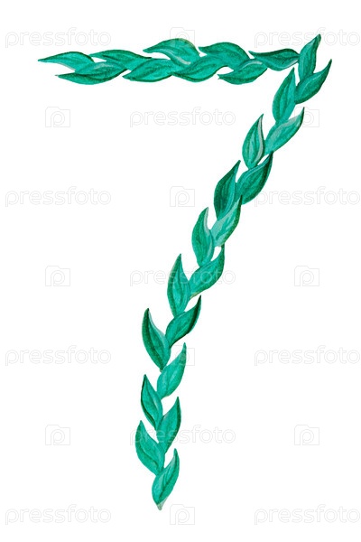 Акварельный рисунок номер 7 из зеленых листьев, выделенных на белом фоне