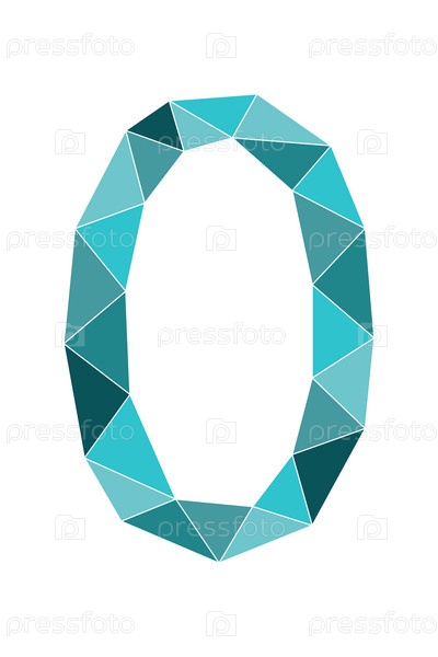 Мятный многоугольник номер 0 изолирован на белом фоне. Номера обучения, серийный номер, цена, место