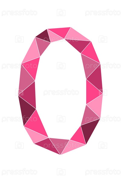 Неоново-розовый многоугольник номер 0 изолирован на белом фоне. Номера обучения, серийный номер, цена, место