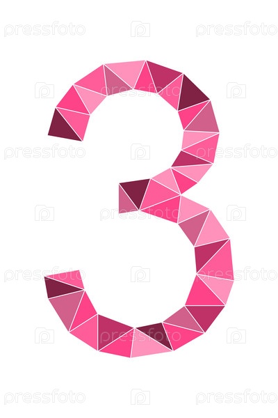 Неоново-розовый многоугольник номер 3 изолирован на белом фоне. Номера обучения, серийный номер, цена, место