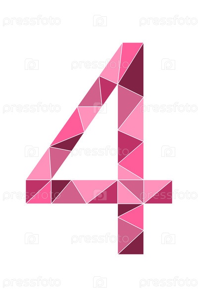 Неоново-розовый многоугольник номер 4 изолирован на белом фоне. Номера обучения, серийный номер, цена, место