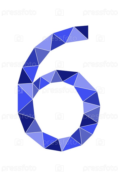 Синий многоугольник номер 6 изолирован на белом фоне. Обучающие номера, серийный номер, цена, место. Векторная иллюстрация
