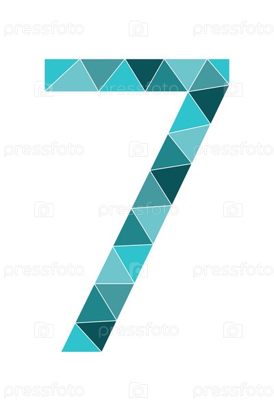 Мятный номер 7 в стиле многоугольника изолирован на белом фоне. Номера обучения, серийный номер, цена, место