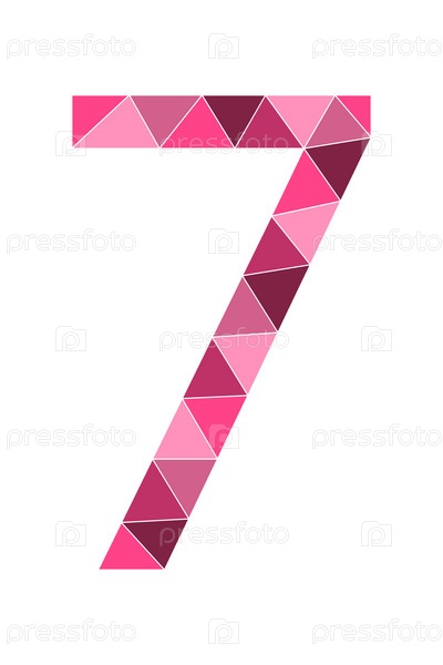 Розовый многоугольник номер 7 изолирован на белом фоне. Номера обучения, серийный номер, цена, место