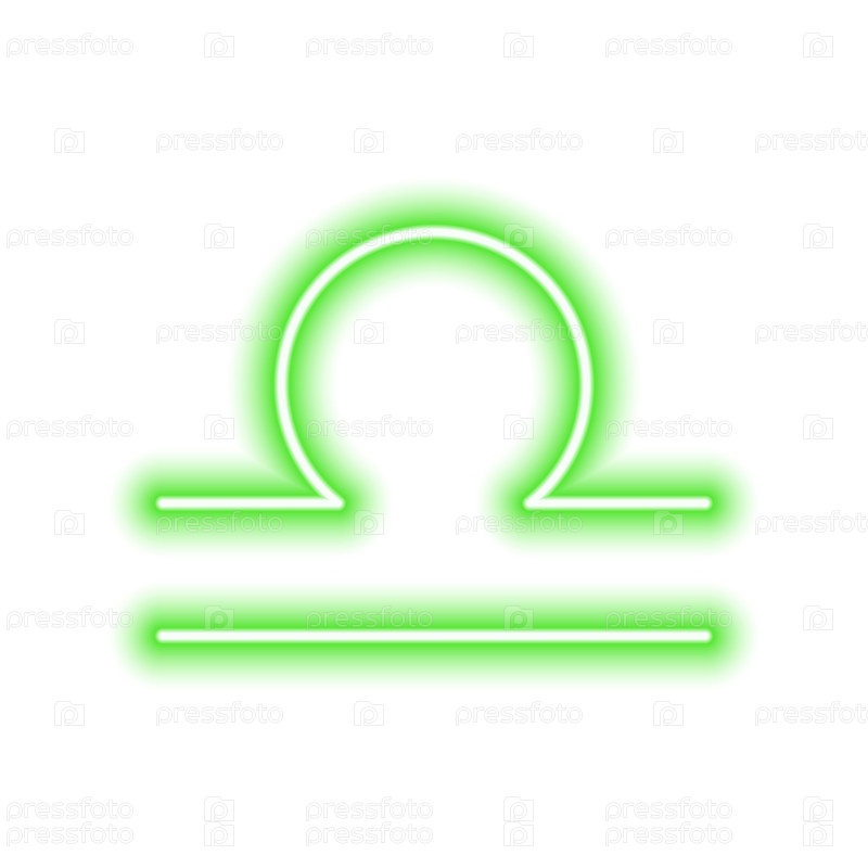 Зеленый неоновый знак зодиака Весы на белом. Прогнозы, астрология, гороскоп