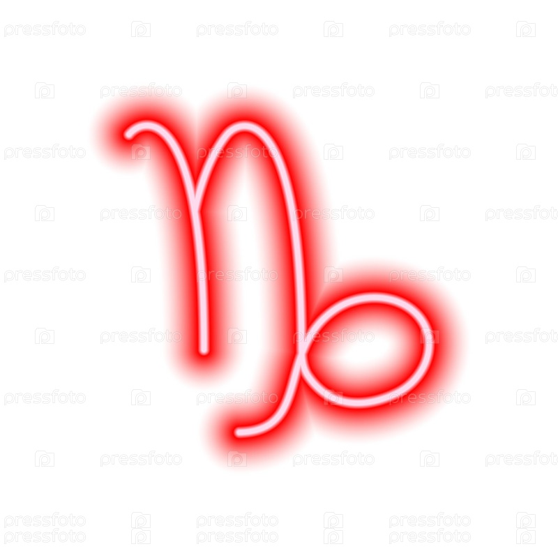 Красный неоновый знак зодиака Козерог на белом. Прогнозы, астрология, гороскоп. Векторная иллюстрация