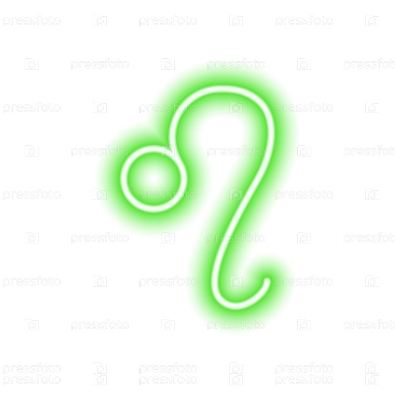 Зеленый неоновый знак зодиака Лев на белом. Прогнозы, астрология, гороскоп