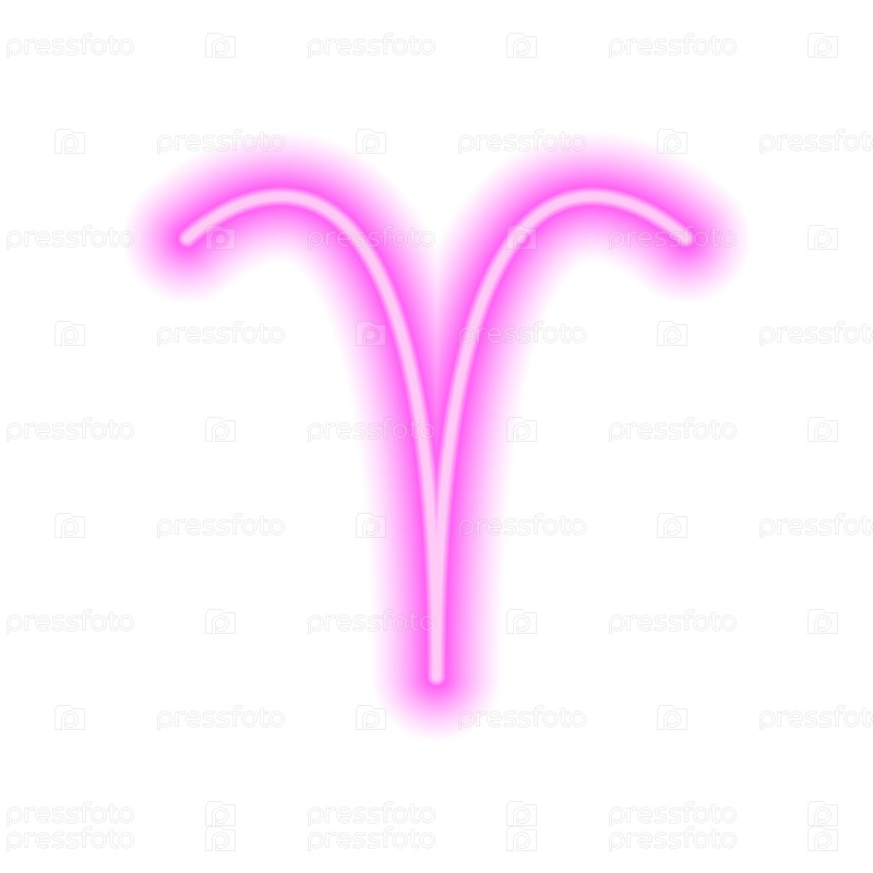 Розовый неоновый знак зодиака Овен на белом. Прогнозы, астрология, гороскоп. Векторная иллюстрация